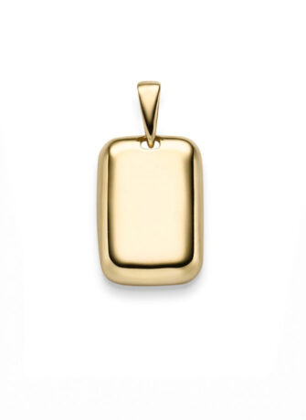 • Gouden Hanger 14 karaat geelgouden hanger. mooi voor een persoonlijke gravure 12 x 8 mm. Hij is een beetje 3D.