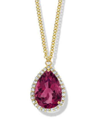 • Hanger ‘Etna’ 18 karaat geelgouden hangercollier met roze toermalijn en briljant