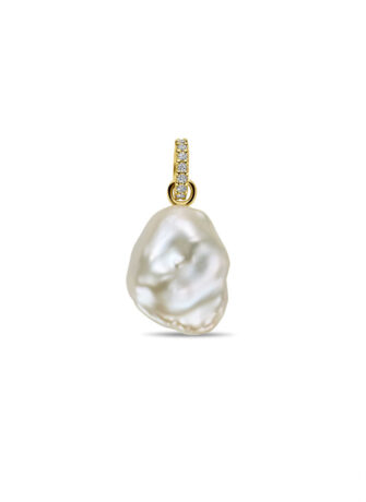 • Gouden parelhanger 14 karaat geelgouden hanger met een barokke zoetwaterparel en briljant geslepen natuurlijke diamanten in het hangeroog.