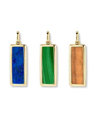 • Hangers ‘Pantelleria’ 18 karaat geelgouden hangers met lapis lazuli, malachiet en tijgeroog