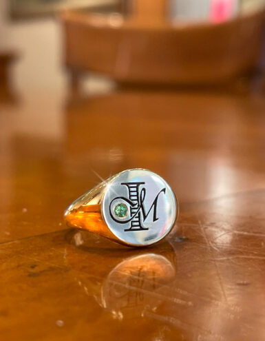 zegelring_goud_geelgoud_gravure_costummade_smaragd_lasergravure_pinkring_signetring_marijnissen_monogram